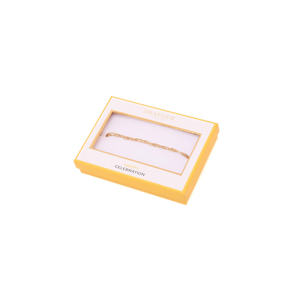 Se entrega en una caja azul marino con logo dorado estampado en caliente. Interior de espuma negra. Folleto explicativo sobre el mantenimiento de joyas.