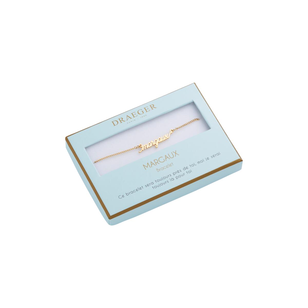 Déjate seducir por nuestra colección de pulseras con nombre en letra cursiva. Esta bisutería personalizada realzará la muñeca de la persona que la lleve. Entregado en su bonita caja, este regalo también complacerá a una amiga, a tu madre o a tu hermana. Esta pulsera dorada quedará preciosa con todos los estilos y para todas las ocasiones: San Valentín, cumpleaños, Navidad.