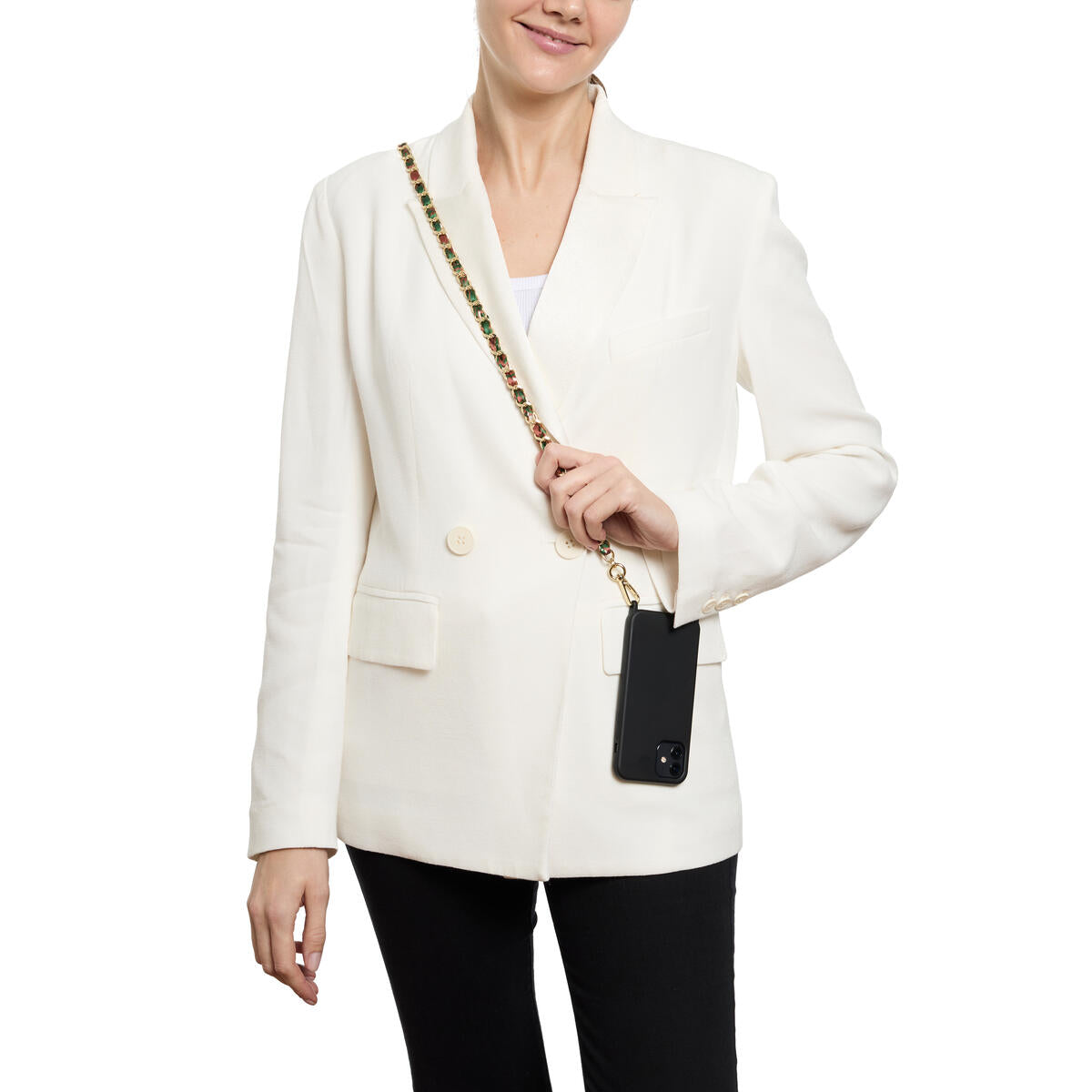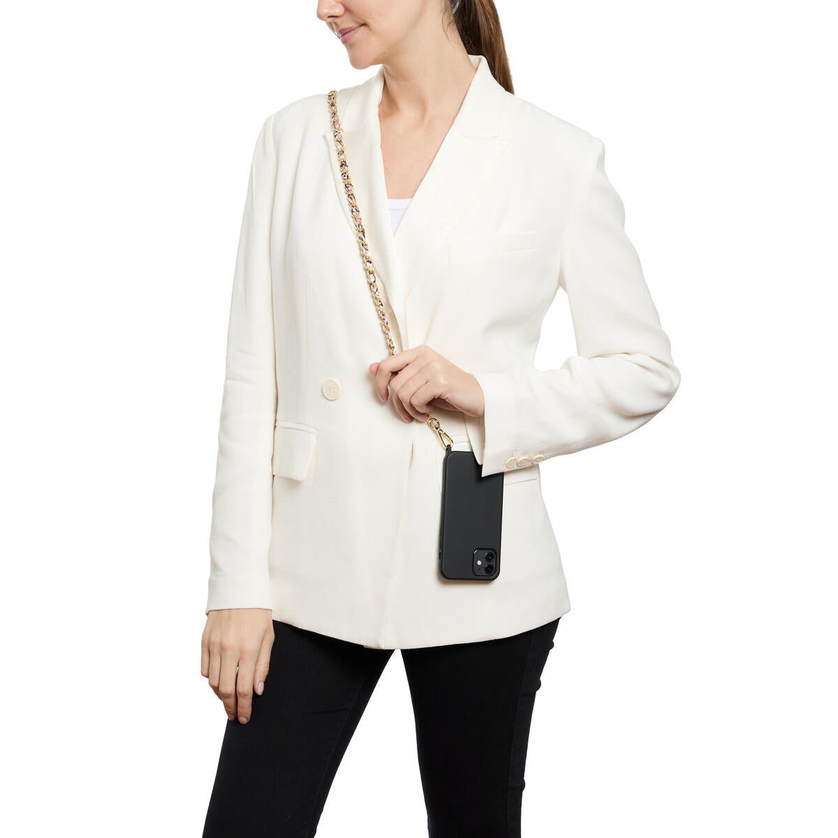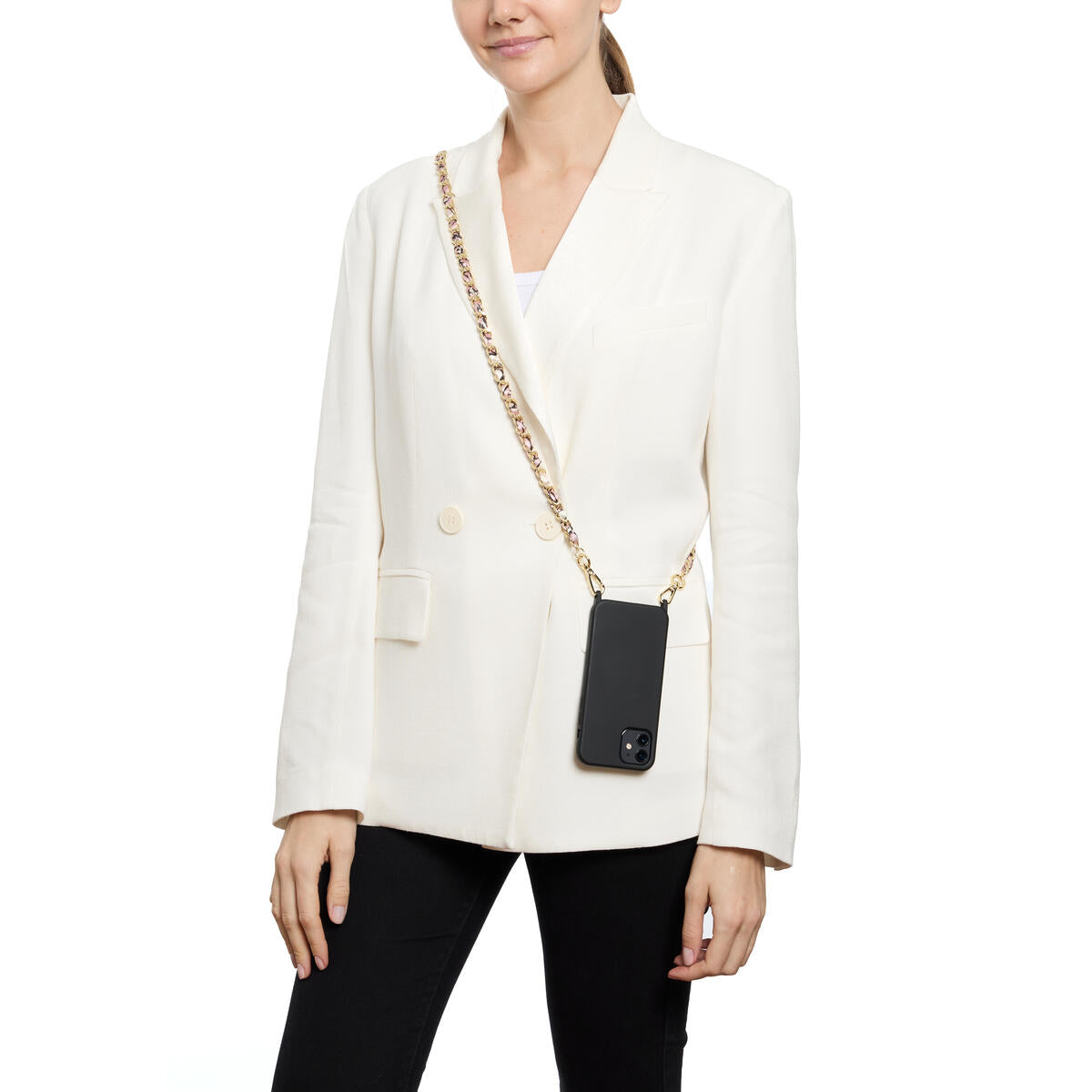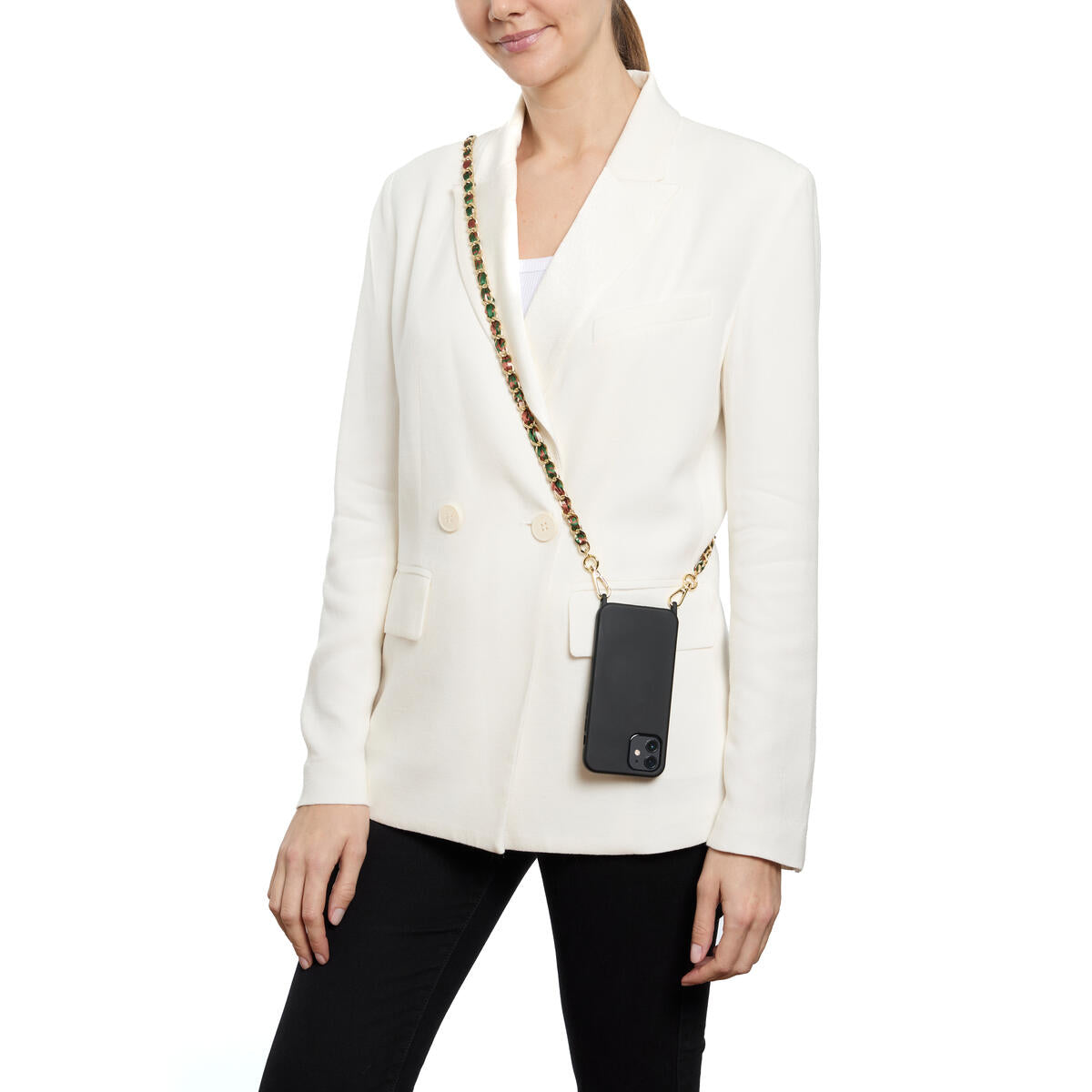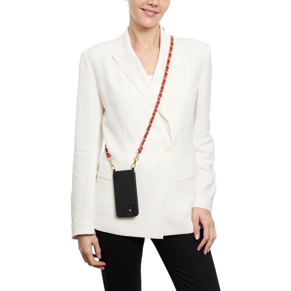 Lleva tu teléfono a todas partes con estilo con esta cadena de piel sintética disponible en varios colores. Ya no tendrás que buscar tu teléfono en el fondo de tu bolso, ahora estará a tu alcance y añadirá un toque moderno a tu look. Práctico y elegante, ¡adoptalo ahora!