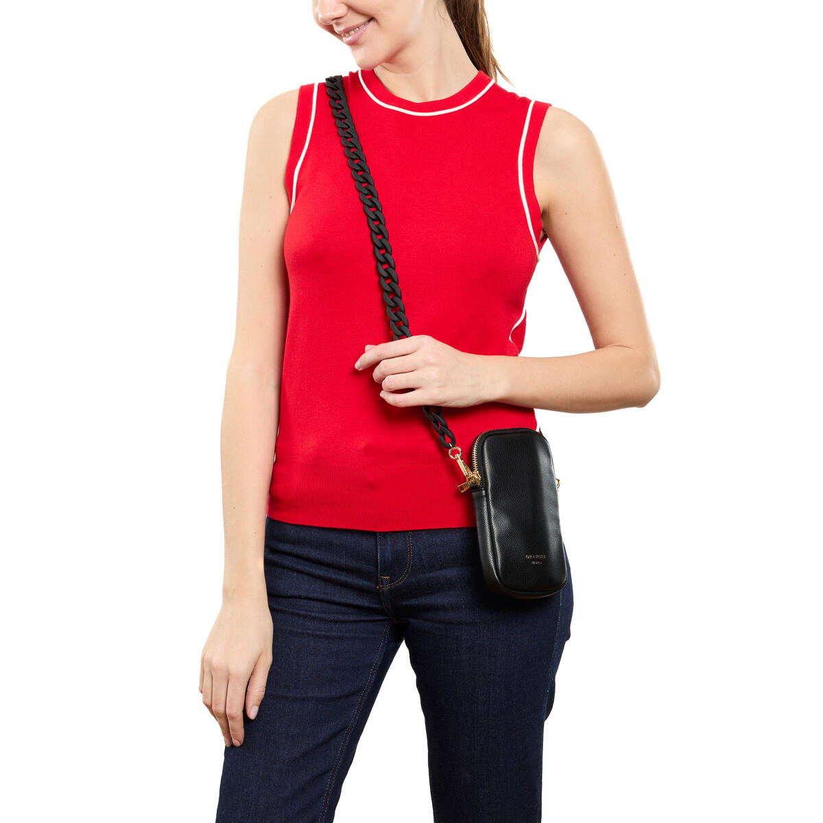 Descubre nuestra moderna Phone Pouch en un formato práctico, diseñada para adaptarse a todos los tamaños de smartphones, desde los modelos más pequeños hasta los más grandes.
