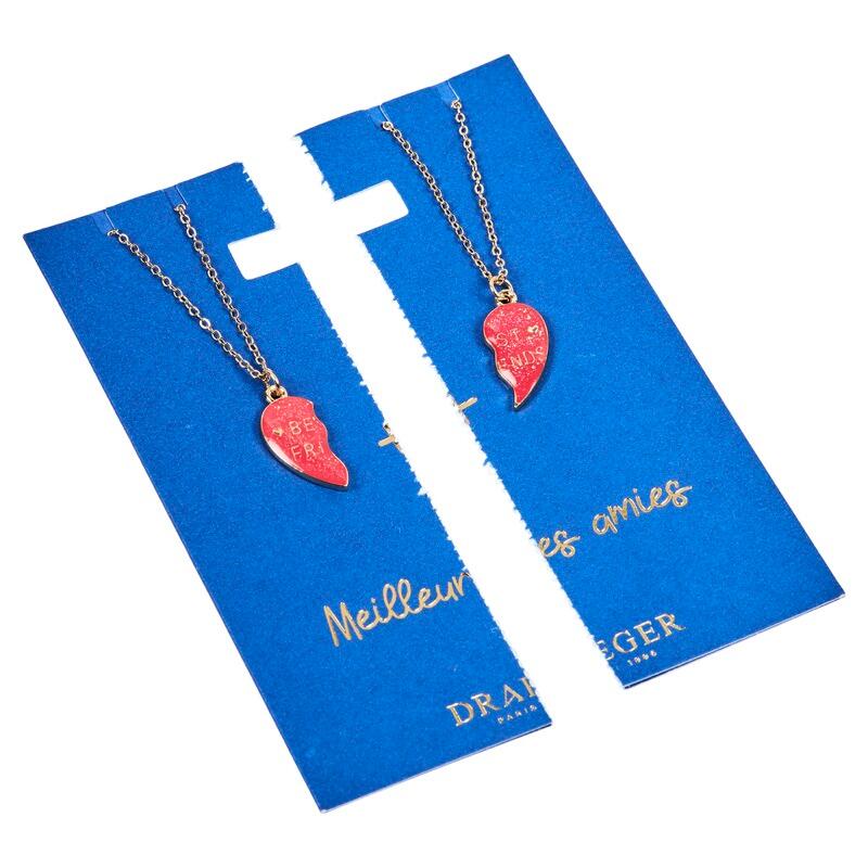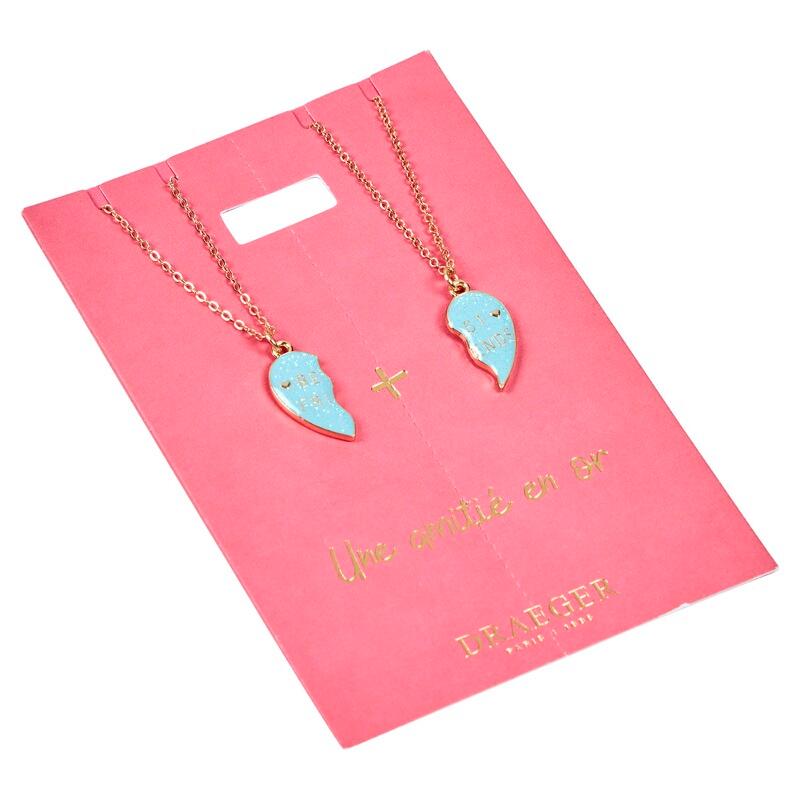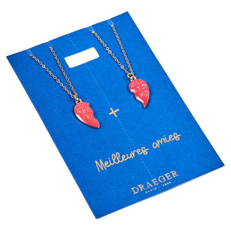 Une amitié en or, c'est si rare ! Si vous avez la chance d'avoir rencontré une amie qui sait vous comprendre et rire de tout avec vous, faites-lui plaisir avec un cadeau original qui a de la valeur pour vous deux ! Ce lot de deux colliers fantaisie a été pensé pour toutes les meilleures amies qui veulent symboliser leur amitié unique par un joli bijou. Chacune sa chaîne et sa moitié de cœur en pendentif pour penser à l'autre tous les jours.